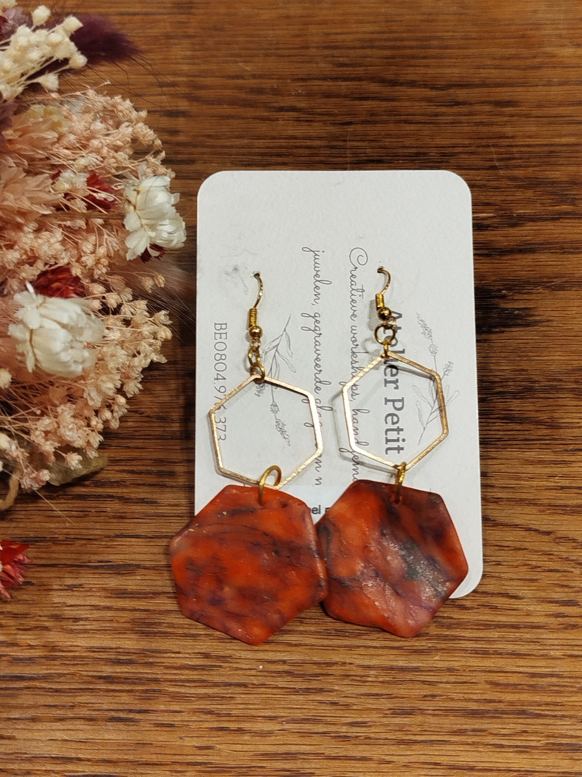 Oorbellen gemaakt met Fimo polymeerklei en alcoholinkt.